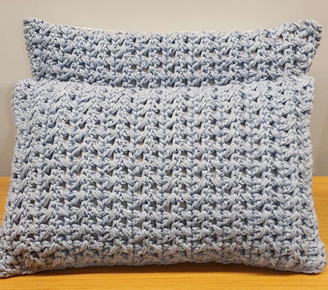 Almofada tecida em crochê, com fio de algodão mercerizado, duplo.