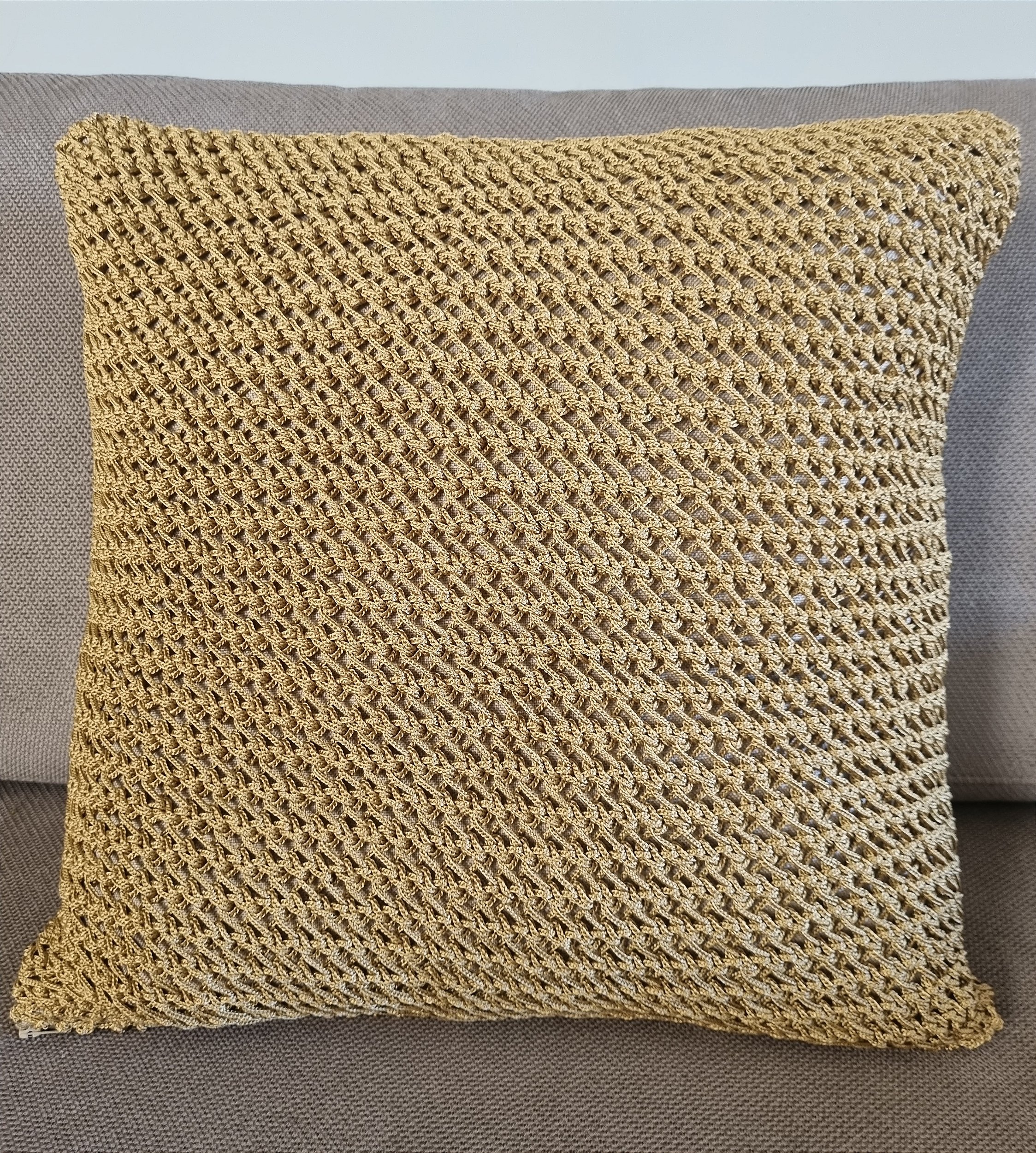 Almofada tecida com fio dourado, resistente.Chique, complementa com várias outras peças de cores diversas.